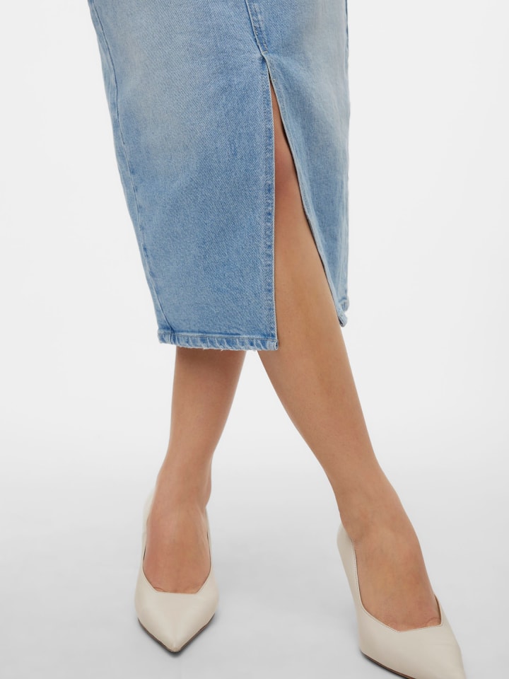 Изготовлено из переработанного материала / Женская джинсовая юбка VERO MODA длиной до икры с разрезом - идеально подходит для повседневных летних образов