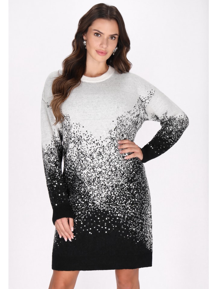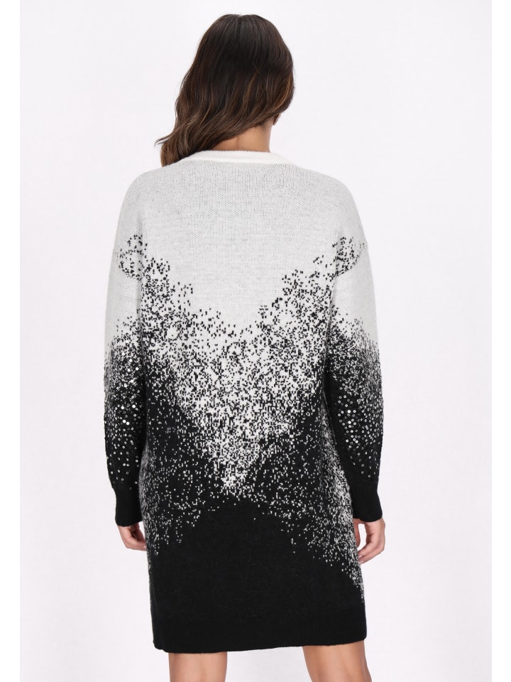 Embrace the charm of this knitted dress, showcasing an elegant style ideal for every occasion. With long sleeves and a round neck, it ensures comfort while the ombre design enhanced by bling and sequins brings a glamorous flair. Perfect for festive gatherings, this stunning knitwear piece is a must-have addition to your Christmas wardrobe.materials