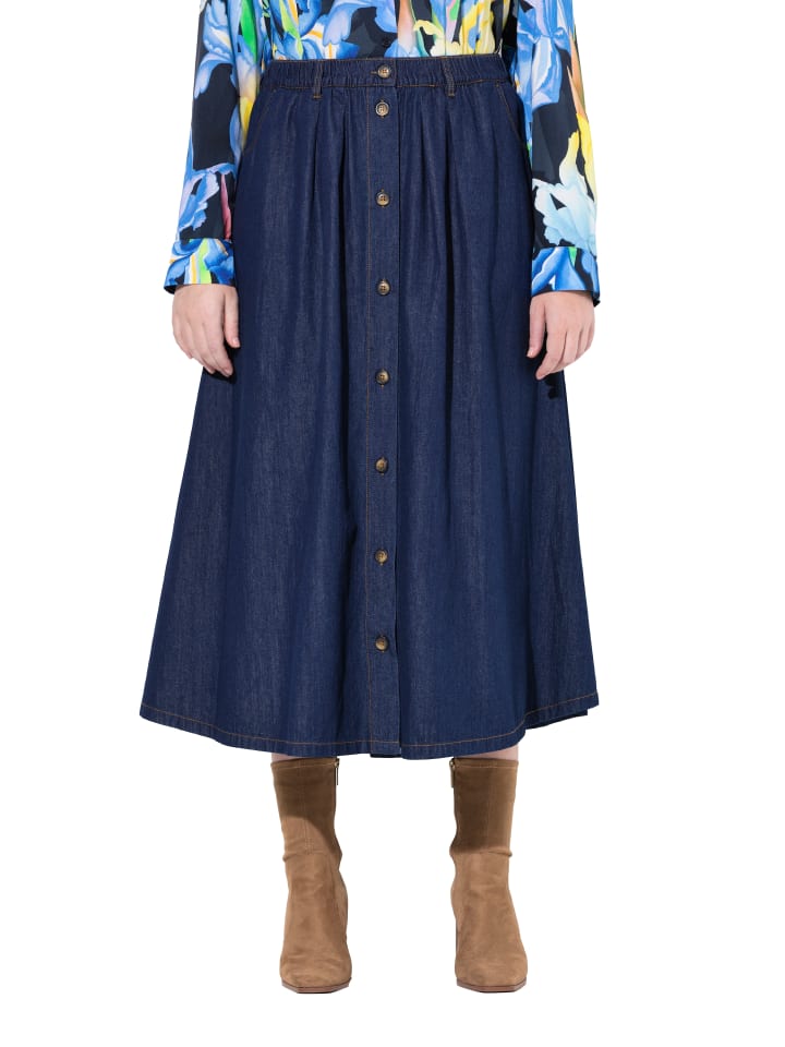 Юбка до колена Ulla Popken, цвет dark blue denim