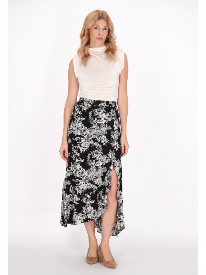 Fashionable midi skirt with a regular cut. It features an elegant slit and playful pleats, while the elasticated waistband ensures ultimate comfort. It is made from fabric decorated with a stunning floral print. It is ideal for elevating a fashionable look. It is part of the Fashion Look Collection.