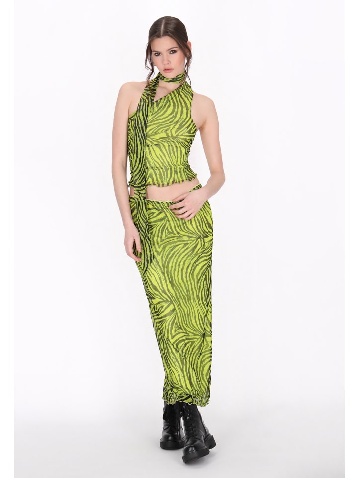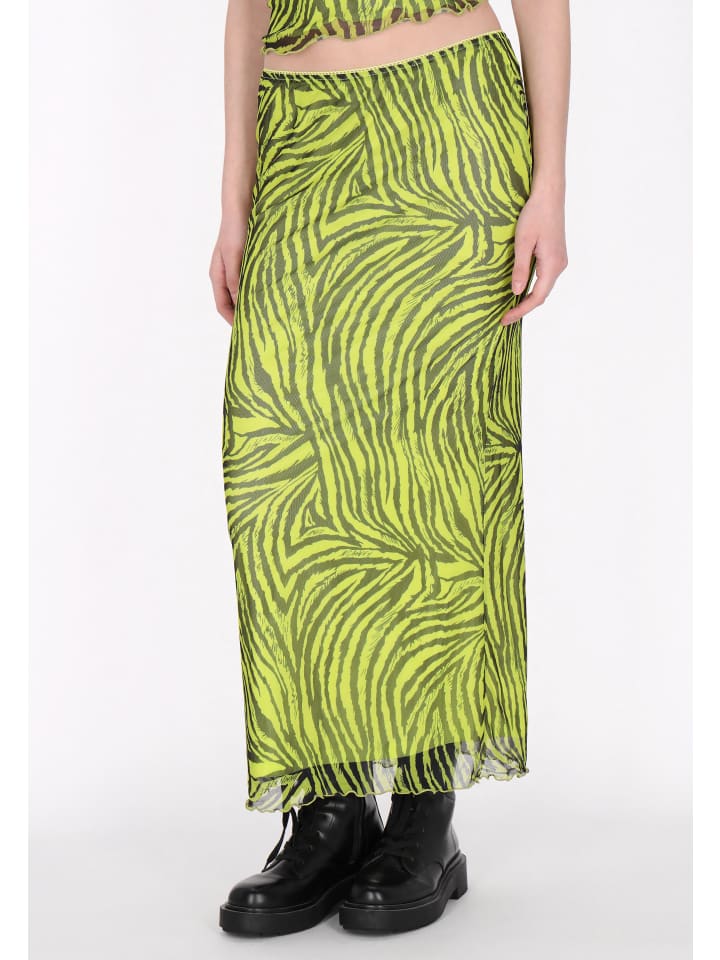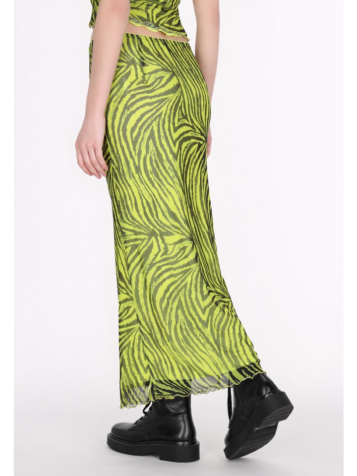 Step into style with this trendy maxi skirt that showcases a striking zebra print. Designed in a slim fit, it has an elastic waistband for all-day comfort that flatters your figure. Lined and made of mesh for added elegance! The ruched hem adds a playful touch, making it perfect for everyday fashion looks from our Fashion Look Collection.