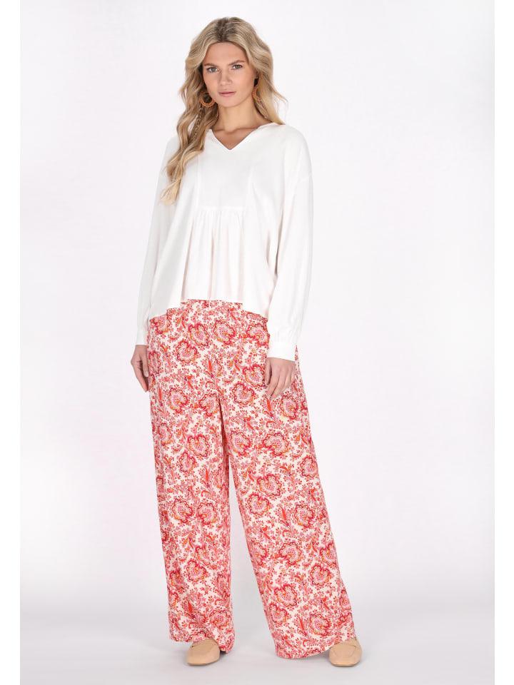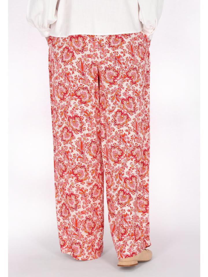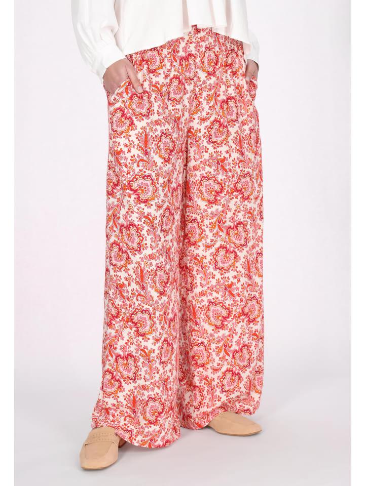 These long, wide-leg pants with a relaxed fit and elastic waistband provide ultimate comfort. An intricate floral print woven into the fabric adds a touch of whimsy to everyday fashion. Perfect for casual outings or festival occasions, these stylish pants offer an airy silhouette that exudes unforced chic. They are part of the Festival Collection.