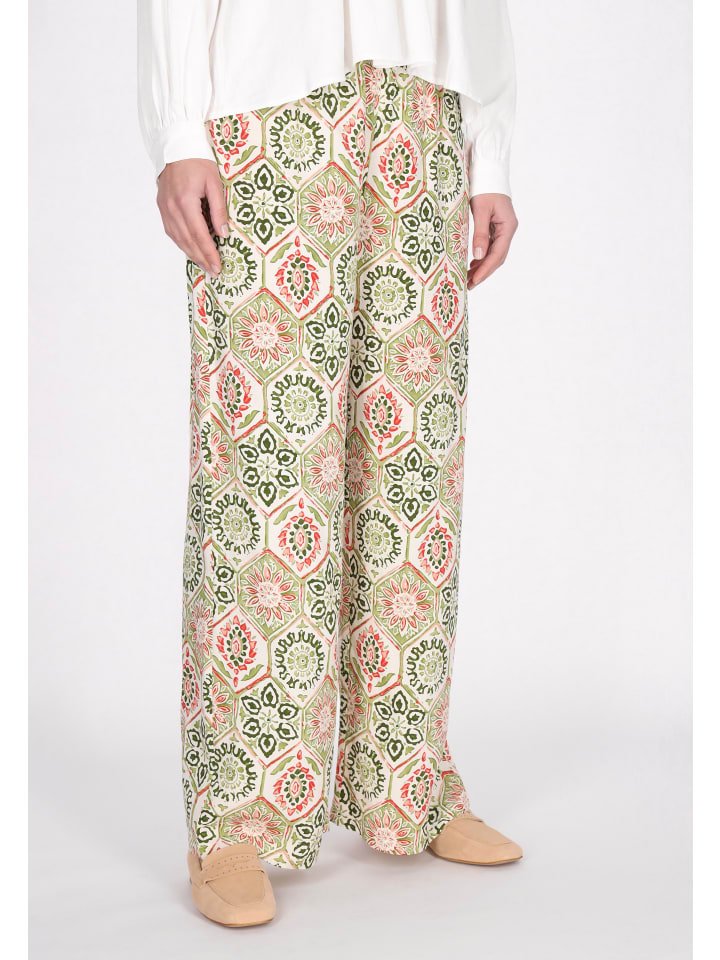 Introducing a pair of pants with a relaxed fit and wide, long legs for style. The elastic waistband provides comfort, and a snug fit. The woven fabric is decorated with a floral print for a boho-inspired look. Perfect for casual or festival occasions. They offer both comfort and style in one elegant package. They are part of the Festival Collection.