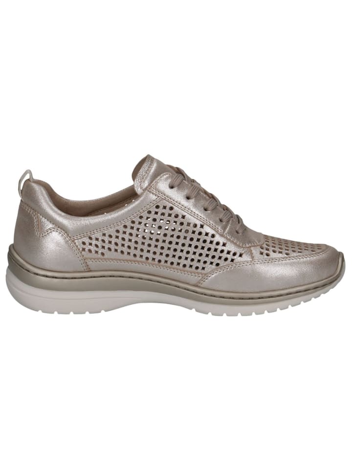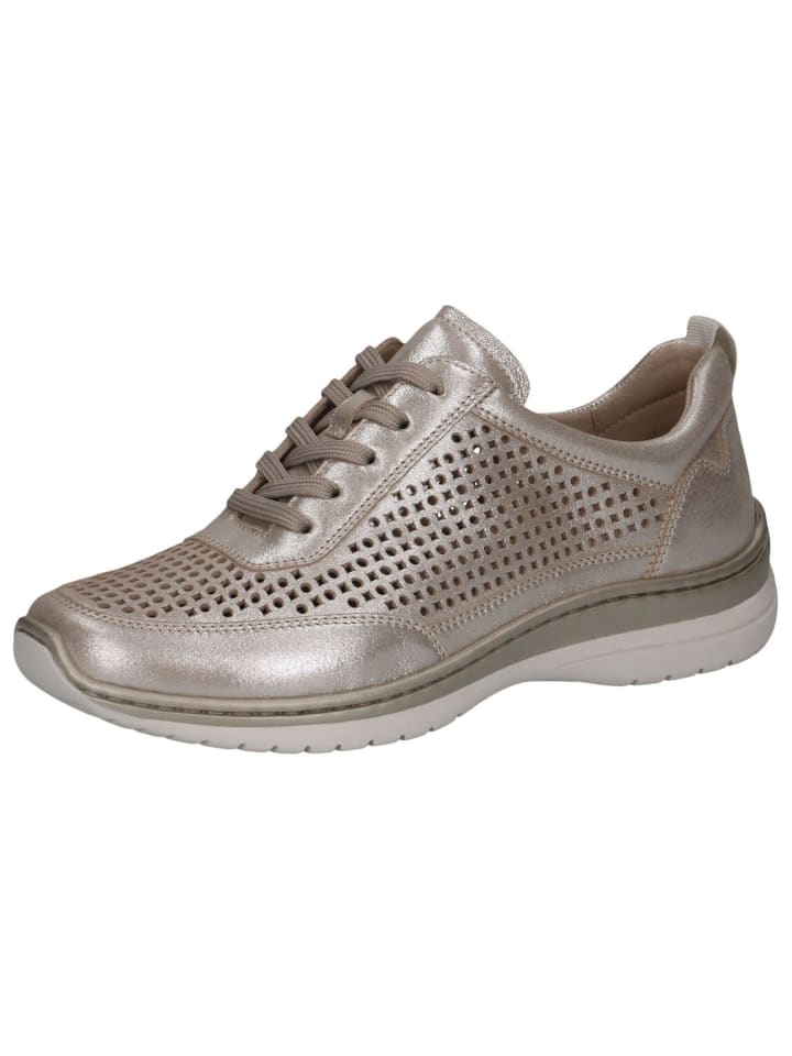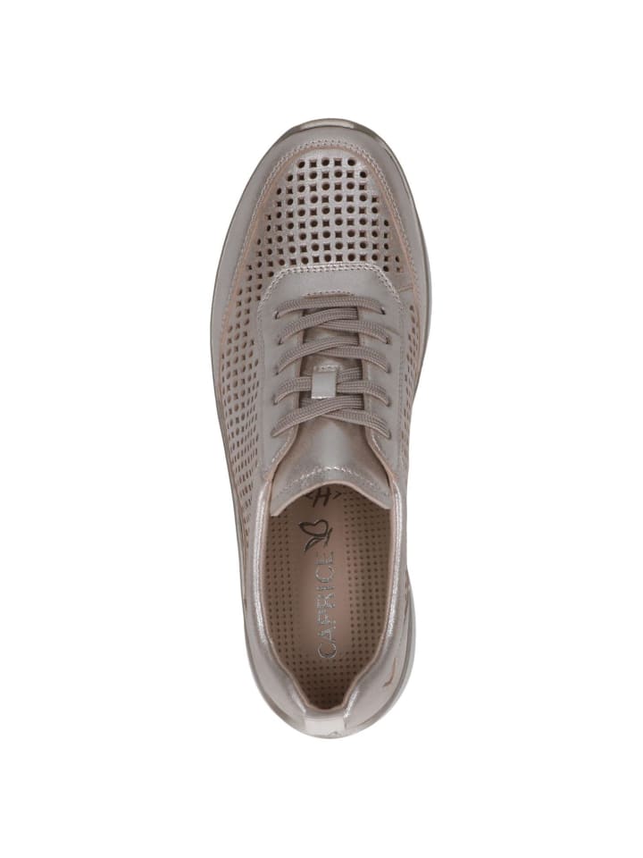 Почувствуйте комфорт и стиль кроссовок CAPRICE с низким вырезом! Имея высоту голенища 6 см и круглый носок, они станут идеальным компаньоном на каждый день. Высококачественный кожаный верх и удобная синтетическая подкладка обеспечивают длительный комфорт при ношении. Сверхпросторные кроссовки H-образной ширины обеспечивают оптимальное пространство для ног. Подошва из синтетики высотой 4 см с технологией CAP Climo FB делает каждый шаг легким и приятным. Застежка на шнуровке позволяет вам индивидуально настраивать. Побалуйте себя этой обувью и проходите повседневную жизнь стильно!