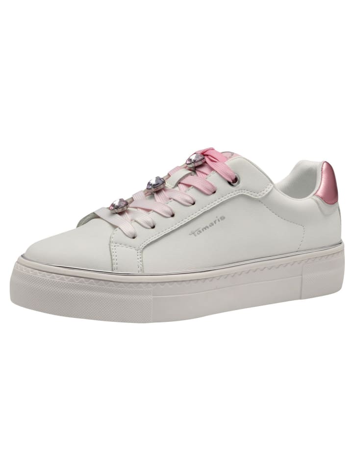Кроссовки на шнуровке Tamaris, цвет white/pink