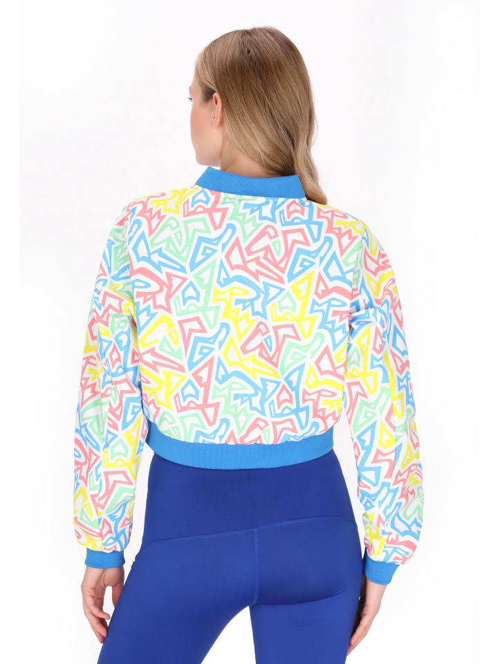 Unleash your style with this athleisure bomber jacket, designed with a relaxed fit. The zip-up front and ribbed collar give it a sporty vibe, while the long sleeves have elastic cuffs for extra comfort. Made from woven fabric, the abstract print elevates your everyday fashion game, making it an essential garment in your casual Outwear Collection.