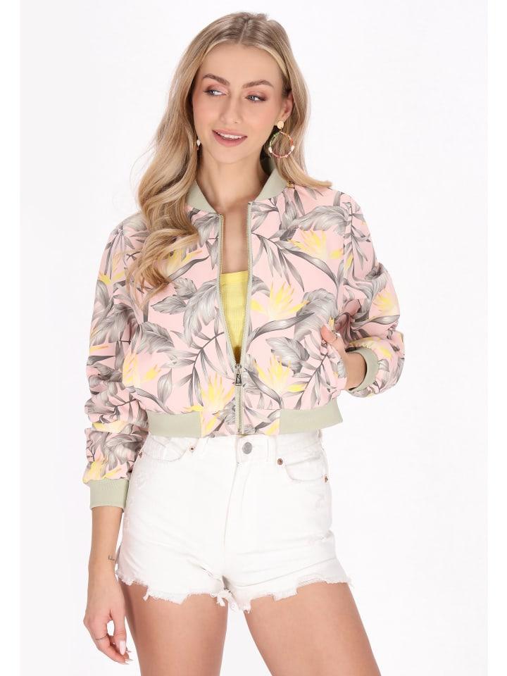 Unleash your style with this trendy bomber jacket, designed with a relaxed fit. The zip-up front and ribbed collar give it a sporty vibe, while the long sleeves have elastic cuffs for extra comfort. Made from woven fabric, the tropical print elevates your everyday fashion game, making it an essential garment in your casual Outwear Collection.