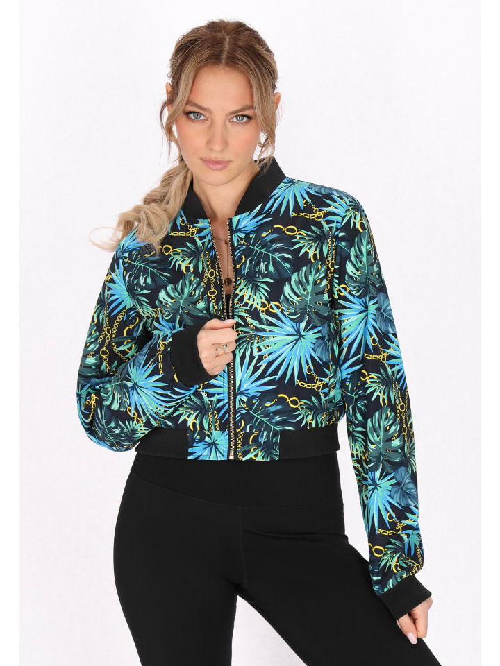 Unleash your style with this trendy bomber jacket, designed with a relaxed fit. The zip-up front and ribbed collar give it a sporty vibe, while the long sleeves have elastic cuffs for extra comfort. Made from woven fabric, the tropical print elevates your everyday fashion game, making it an essential garment in your casual Outwear Collection.