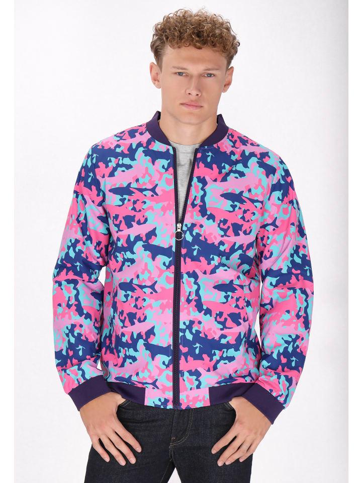 Раскройте свой стиль с этой модной курткой-бомбером свободного кроя. Застежка-молния спереди и ребристый воротник придают изделию спортивный вид, а длинные рукава имеют эластичные манжеты для дополнительного комфорта. Изготовленный из тканого материала, принт «моро» выведет ваш повседневный стиль на новый уровень, сделав его неотъемлемой частью вашей коллекции повседневной верхней одежды. - Куртка-бомбер свободного кроя с ребристым воротником и длинными рукавами