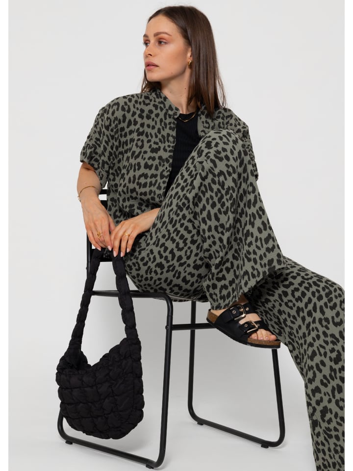 - Дизайн: леопардовый принт, модный, струящийся, с широкими штанинами, модный, эффектный образ.
