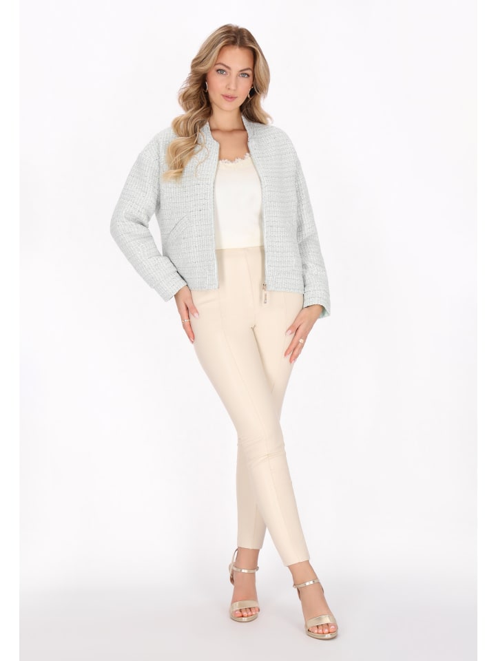 Elevate your style with this elegant cropped jacket from our Fashion Look Collection. It has a regular fit, round neckline and front closure for easy wear. Long sleeves with a slight flare at the cuffs create a casual vibe. Embellished with metallic thread and sequins and practical pockets, it showcases a woven check pattern, perfect for evening outings