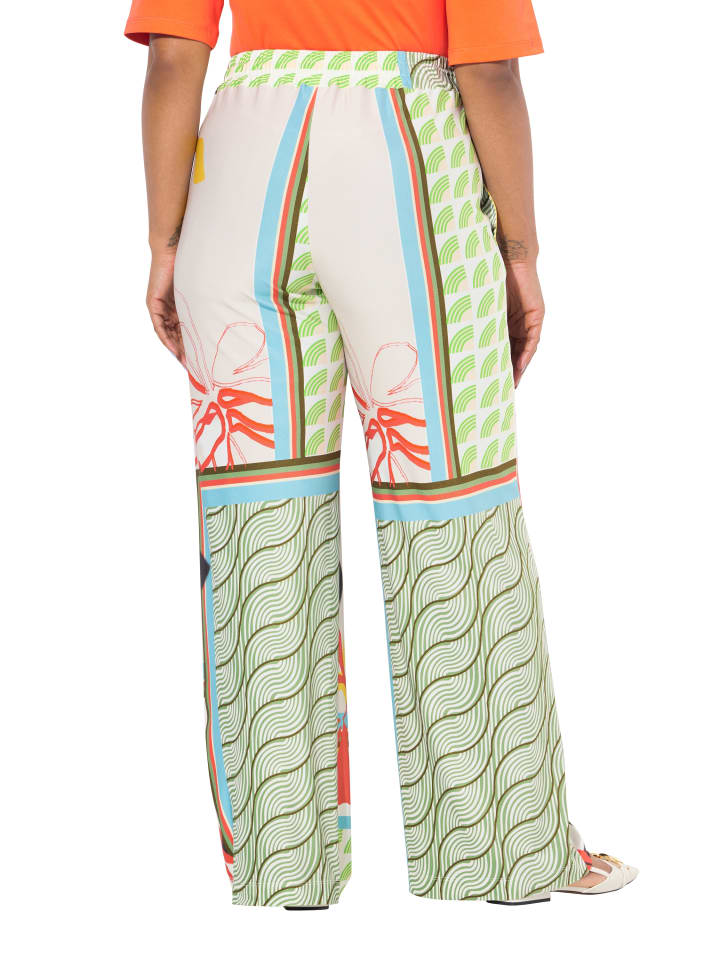 Обтягивающие брюки с широкими прямыми штанинами из стильной облегающей ткани с тонкой текстурой и модным дизайном. Эластичный пояс - всегда удобно. Карманы с боковым швом.материал