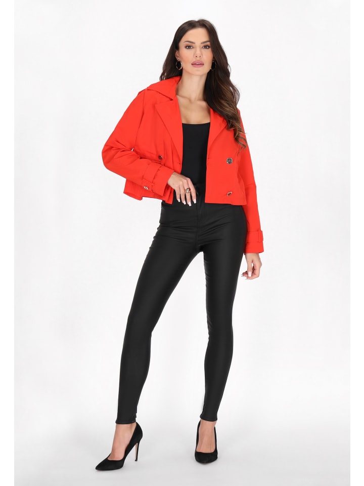 Discover a fashionable lightweight jacket with a loose fit and stylish lapel collar. This V-neck model has long sleeves, a double-breasted front and functional pockets for added convenience. The epaulettes accentuate the look of the woven, smooth fabric, making it an ideal choice for everyday fashion lovers looking for elegant pieces to style. It is part of the Outwear Collection.