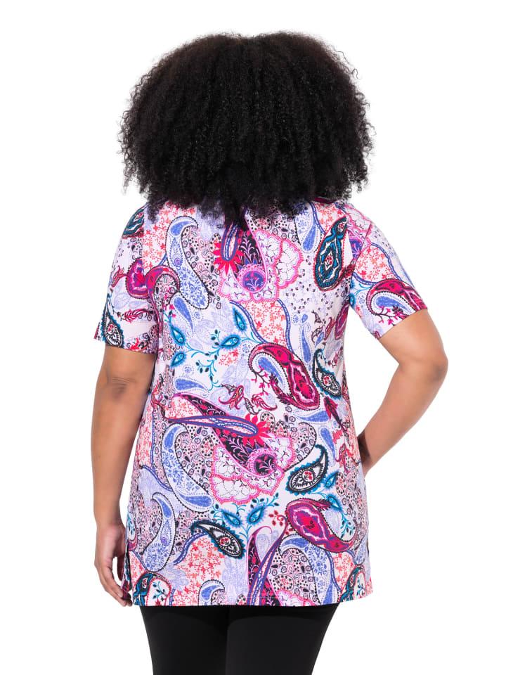 Длинная рубашка А-силуэта с рисунком пейсли. Круглый вырез с маленькой замочной скважиной, полурукавка. Удобный подол с разрезами по бокам.материал