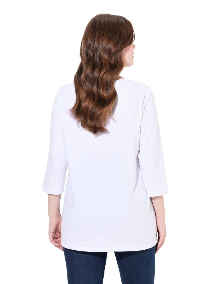 Футболка А-силуэта из гладкого трикотажа с цветочным принтом. Вырез туники, рукава 3/4.материал