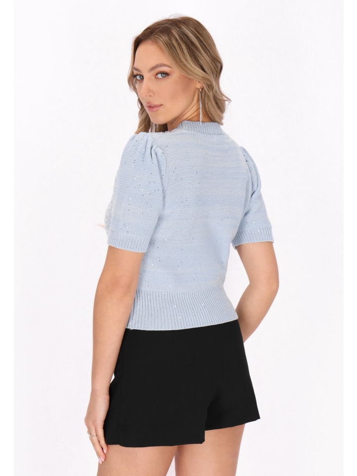 Enhance your wardrobe with this elegant regular fit sweater with short sleeves from the Fashion Look collection. The round neckline is beautifully accented with shiny sequins, while the cute bow adds a stylish touch. Made from soft jersey, it provides comfort and sophistication, making it a must-have in your fashion Collection.