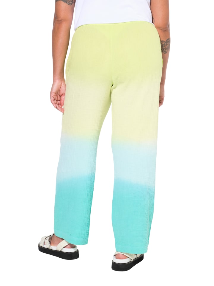 Муслиновые брюки, прямые штанины, из мягкого муслина с мягким градиентом. Эластичный пояс с завязками, карманы на боковых швах.материал