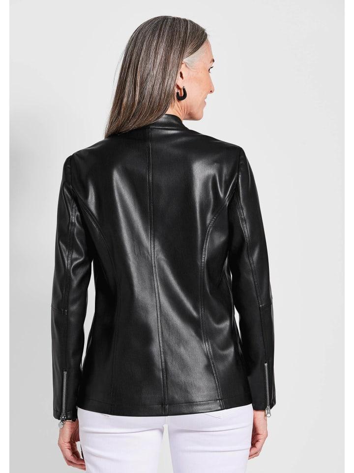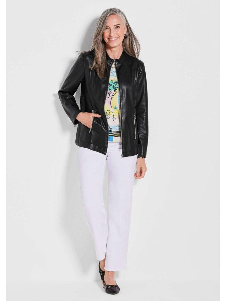 Куртка с кожаным принтом, подчеркивающая изысканность деталей: серебристые молнии спереди, на карманах и длинных рукавах создают стильные акценты и создают различные варианты укладки. Декоративная строчка подчеркивает плечевую часть и небольшой воротник-стойка. Изготовлен из мягкой искусственной кожи, не требующей особого ухода, для комфортного ношения. Кормить. Длина около 64 см в гр. 46, около 61 см в гр. 23.