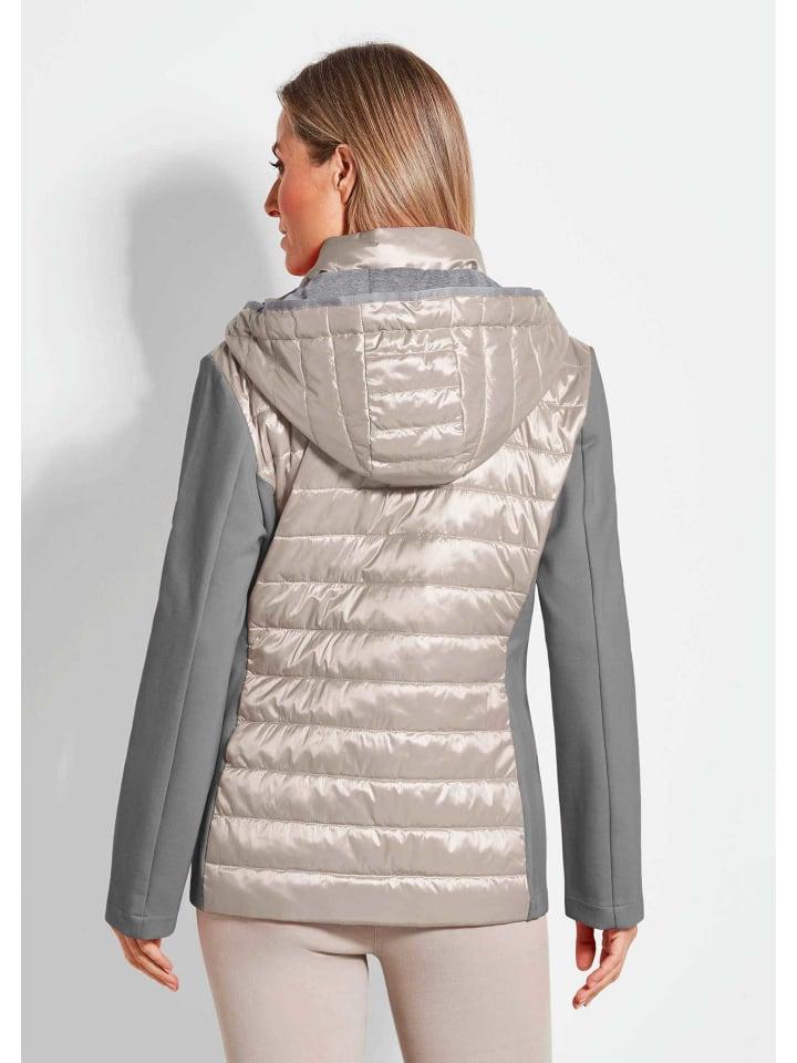 Куртка: Функциональность сочетается с современным дизайном. Съемный капюшон обеспечивает дополнительную защиту в непостоянную погоду. Гармонично подобранное сочетание материалов из эластичного трикотажа и тонкого блестящего стеганого полотна создает привлекательный внешний вид. Легкий ватин обеспечивает комфортное тепло без нанесения. Спортивные детали контрастного цвета создают модные акценты. Направляющая для придания формы шву для создания привлекательного силуэта. Длина ок. 69 см в гр. 46, около 65 см в гр. 23.