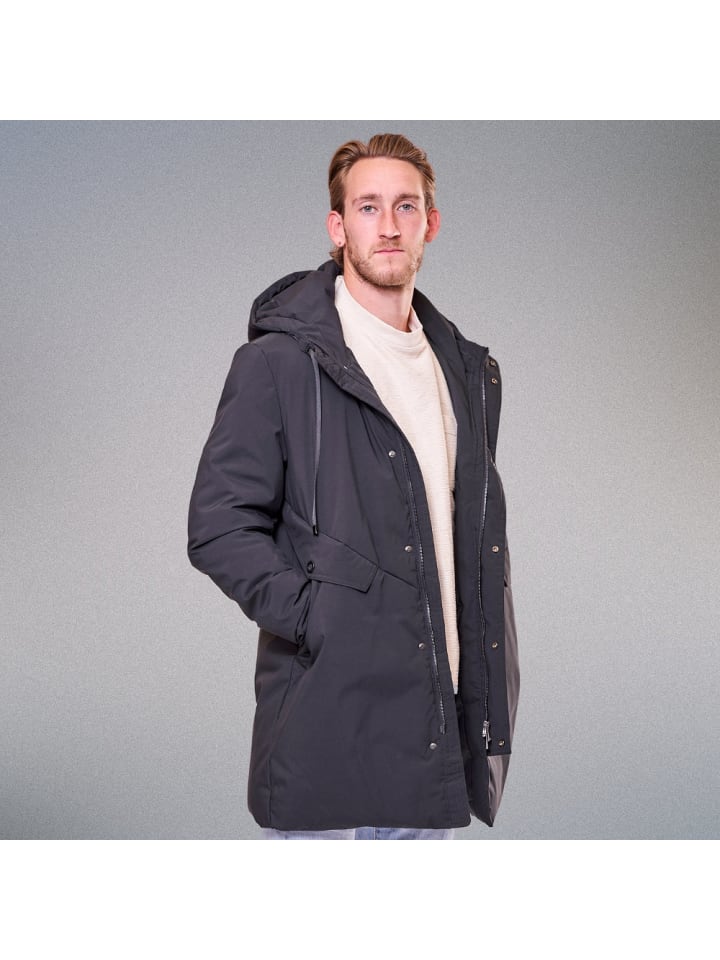 • Мужская парка с черной подкладкой • Значок на левой груди • Шнурки на капюшоне • Карманы на молнии Материал: 100% полиэстерматериалы