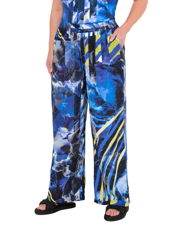 Брюки-палаццо с широкими прямыми штанинами. Мягкая спадающая вискоза -качественная, со спортивным узором. Эластичный пояс с боковыми карманами.материал