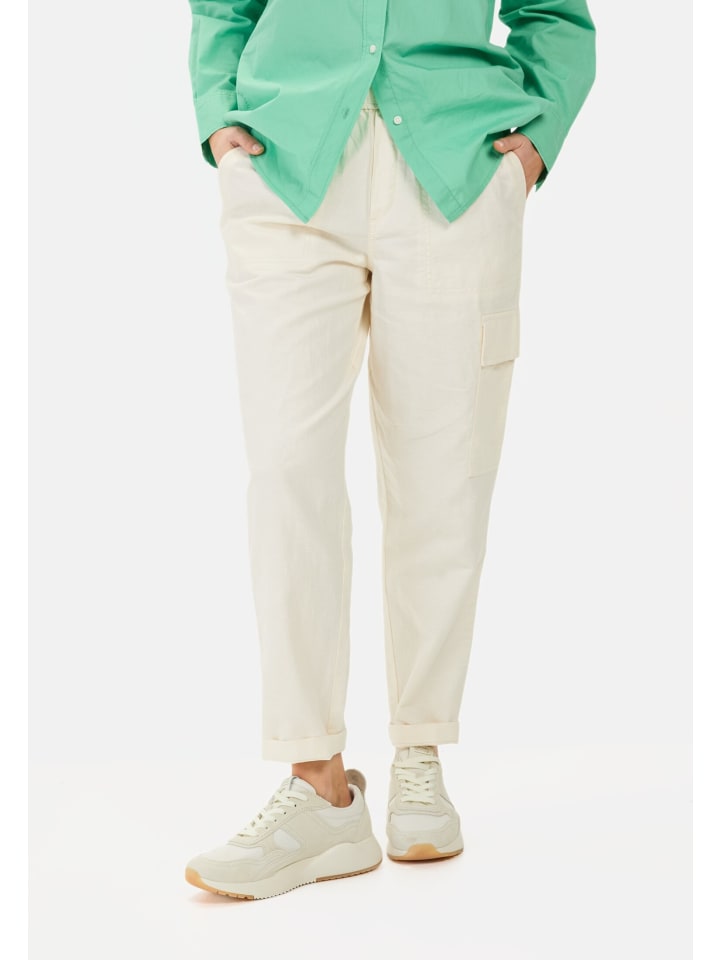 Эти брюки camel active свободного кроя и сочетания льна и хлопка создают ощущение комфорта при ношении. Его плоская тканая текстура придает ему приятный вид, а окрашивание краской для одежды придает ему особую цветовую гамму. Поскольку в нем нет эластана, брюки остаются аутентичными и естественными по форме, что идеально подходит для повседневного образа.