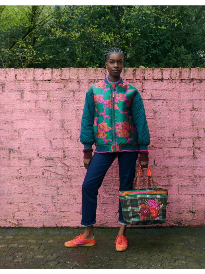 Сделайте ставку на блеск и стильный образ с этим огромным бомбером. Модель с мягкими рукавами украшена тканым жаккардовым принтом из цветов с легкой текстурой. Спортивный вырез, манжеты и подол создают идеальную отделку.- Сделано в Китае