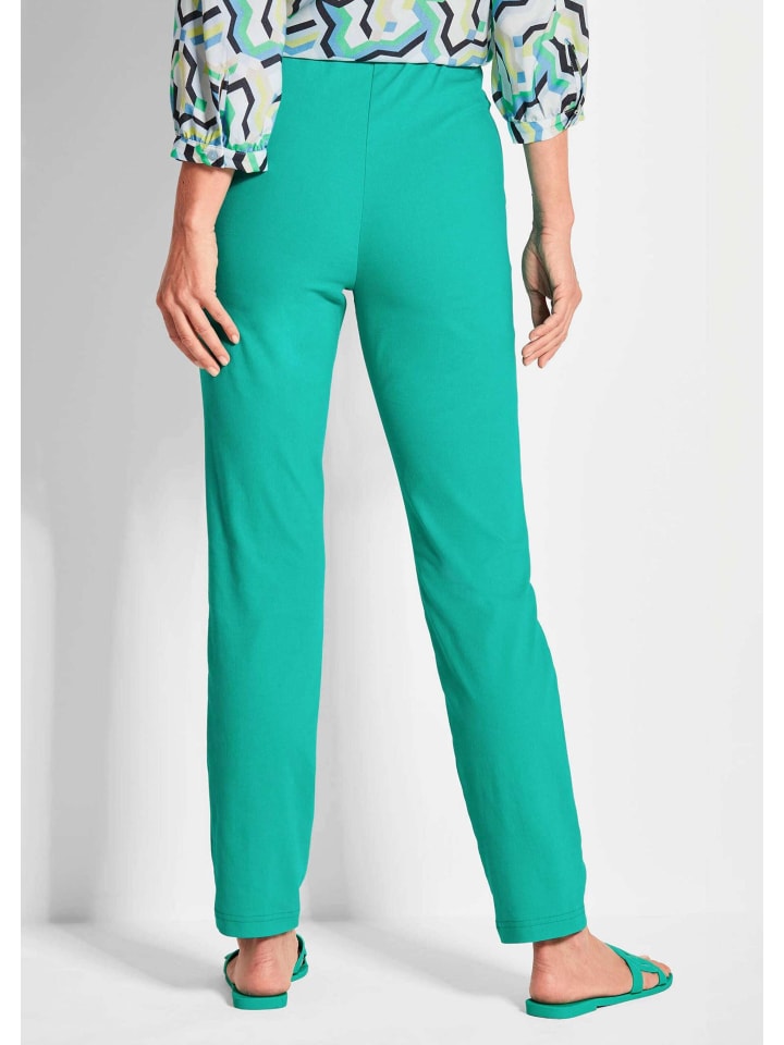 Бенгальские брюки ЛУИЗА с облегающим поясом, эластичные во всех направлениях, облегают каждое движение. Хлопчатобумажная ткань обещает максимальный комфорт. С двумя наклонными карманами на молнии и оптической застежкой-молнией. Длина вкл. Измеренный пояс. Ширина подола около 36 см. Узкая линия ног.