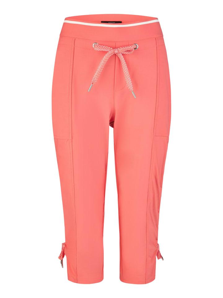 Женские капри Celia в ярких коралловых тонах - идеальный компаньон для занятий спортом и досуга. Эластичный материал с эластичной структурой обеспечивает высокий комфорт при ношении и оптимальную свободу движений. Шнурок на поясе и ножках позволяет индивидуально подобрать форму. Брюки с двумя передними карманами на пуговицах и задними карманами предлагают практичные детали. Длина шва составляет около 53 см, что делает брюки-капри идеальными для теплых дней.