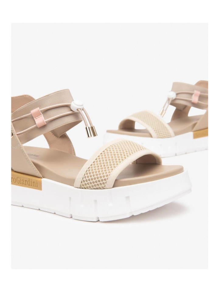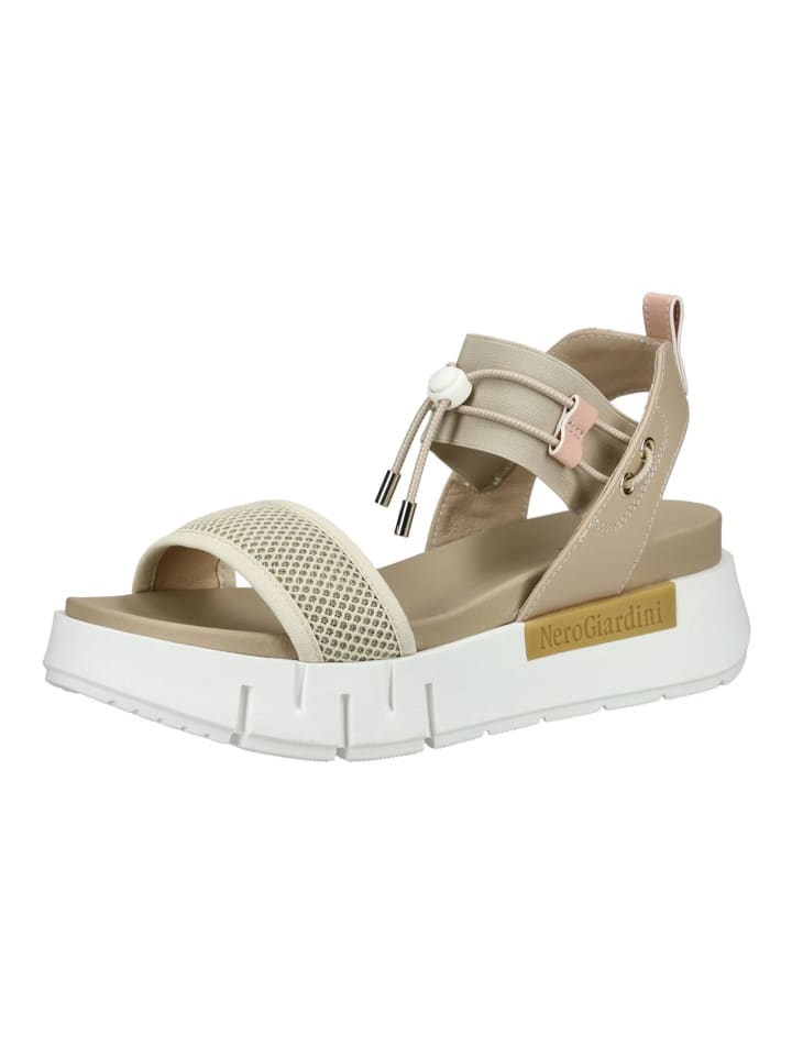 Эти удобные и стильные сандалии на танкетке от Nero Giardini с эластичными вставками и выдающимся качеством всегда обеспечат вам стильную одежду в важных случаях! Кроме того, эти модные и эксклюзивные туфли могут быть привлекательны благодаря сочетанию классных материалов в многослойном виде.