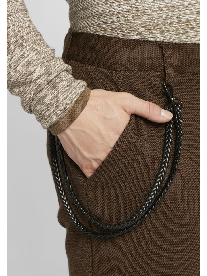 ДЕТАЛИ И ОСНОВНЫЕ МОМЕНТЫ: Брюки с приятной мягкостью и комфортом, эластичный комфорт благодаря эластичной пропорции, прочный и прочный на ощупь, два кармана с защелками, текстурный рисунок, два задних кармана с металлической нашивкой, эластичный пояс с цепочкой для брюк из искусственной кожи, эластичные штанины