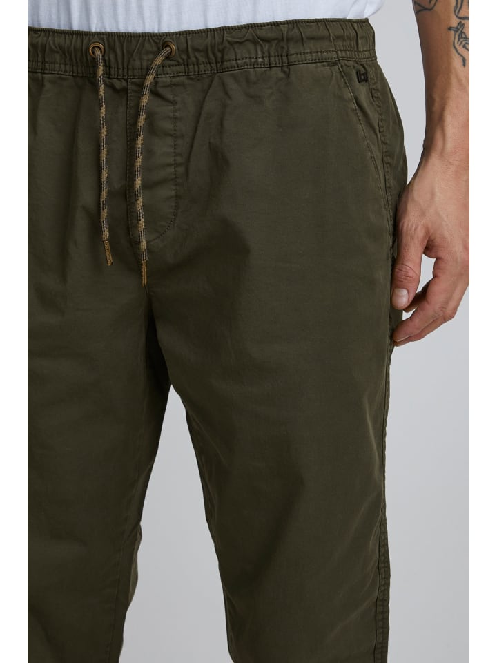 ДЕТАЛИ И ОСНОВНЫЕ МОМЕНТЫ: брюки чинос в стиле джоггера, обычная посадка, эластичный пояс с хлопковыми шнурами, металлические концы шнура, эластичные манжеты на штанинах, два кармана спереди и 2 кармана сзади с пуговицами, тканевая нашивка под правым задним карманом, приятно мягкая и удобная хлопковая подкладка.Материал с эластичной пропорцией