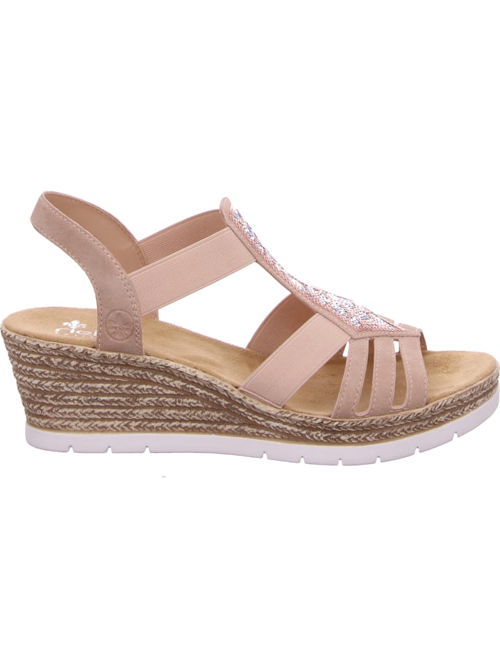 Любимый потенциал обуви! Эти старые розовые сандалии на танкетке Rieker вам больше не захочется снимать. Вход облегчается благодаря эластичной вставке. Центральный ремешок с декоративными бусинами умело освежает дизайн. Легкая и амортизирующая подошва на танкетке обеспечивает максимальный комфорт при ходьбе. 100% потенциал любимой обуви!