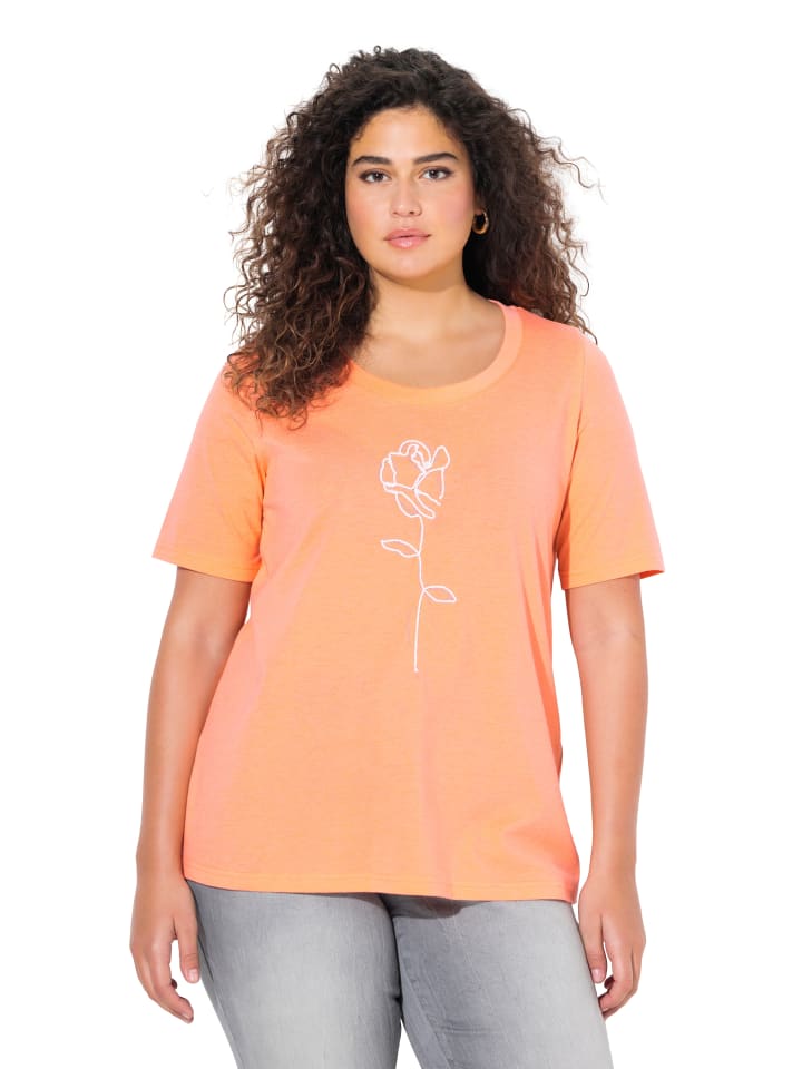 Футболка классической формы с декоративным рисунком в виде розы. Круглый вырез, полурукав.материал