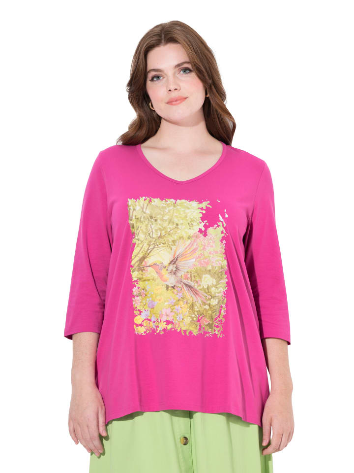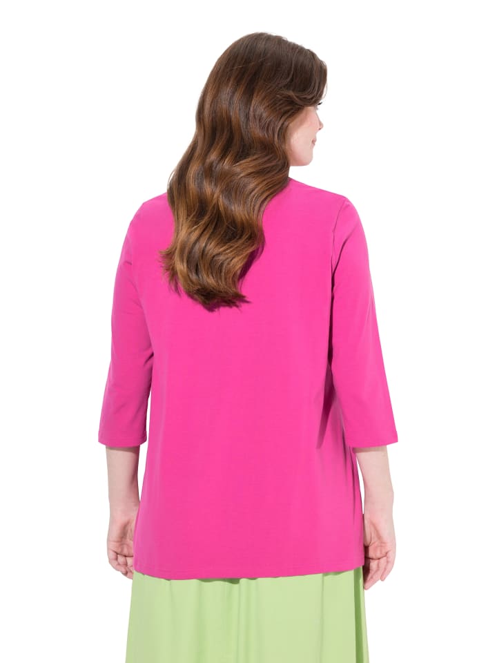 Футболка А-силуэта из гладкого трикотажа с натуральным рисунком. V-образный вырез, рукава 3/4.материал