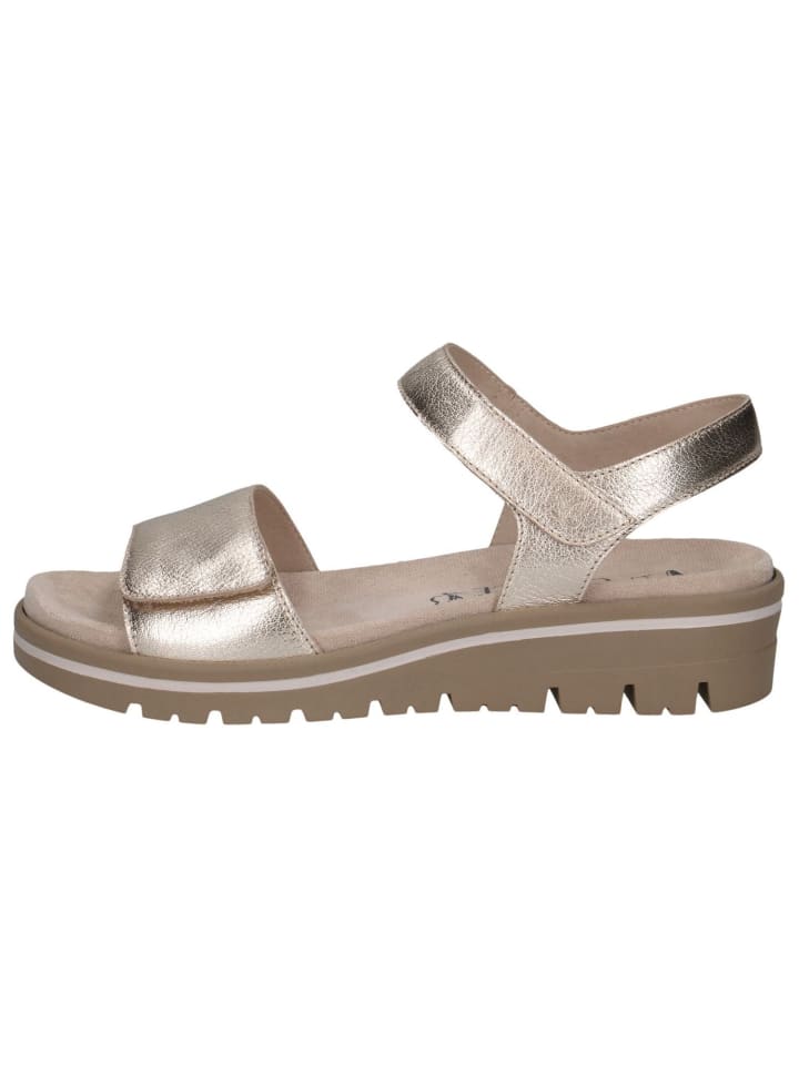 Полюбите эти элегантные босоножки CAPRICE с женственным каблуком на танкетке! Круглый носок и низкий вырез на голенище придают вам повседневный, но стильный вид. Высококачественный кожаный верх идеально сочетается с прочной синтетической подошвой для оптимального комфорта при ношении. Застежка-липучка обеспечивает удобство использования и индивидуальную посадку. Сандалии с высотой голенища 7 см и шириной буквы H обеспечивают достаточно места для ваших ног. Текстильная подошва обеспечивает комфортное ношение. Побалуйте себя этой классикой, которая украсит любой наряд!