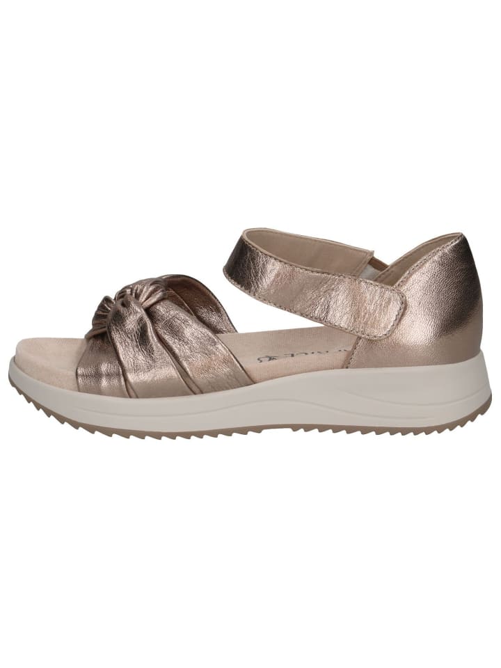 С сандалиями CAPRICE вы делаете ставку на стиль и удобство повседневной носки! Эта симпатичная сандалия имеет удобную высоту голенища 7 см и плоскую конструкцию без каблука, что позволяет вам легко преодолевать каждый шаг. Удобная застежка на липучке позволяет быстро и легко отрегулировать сандалию. Круглый носок и широкая подошва обеспечивают достаточное пространство и комфорт. Верх из высококачественной кожи и текстильная подошва обеспечивают комфортную среду для ног. С инновационной технологией подошвы CAP Memo /rem.f. вы получите исключительное удовольствие от ходьбы. Побалуйте себя этим стильным компаньоном!
