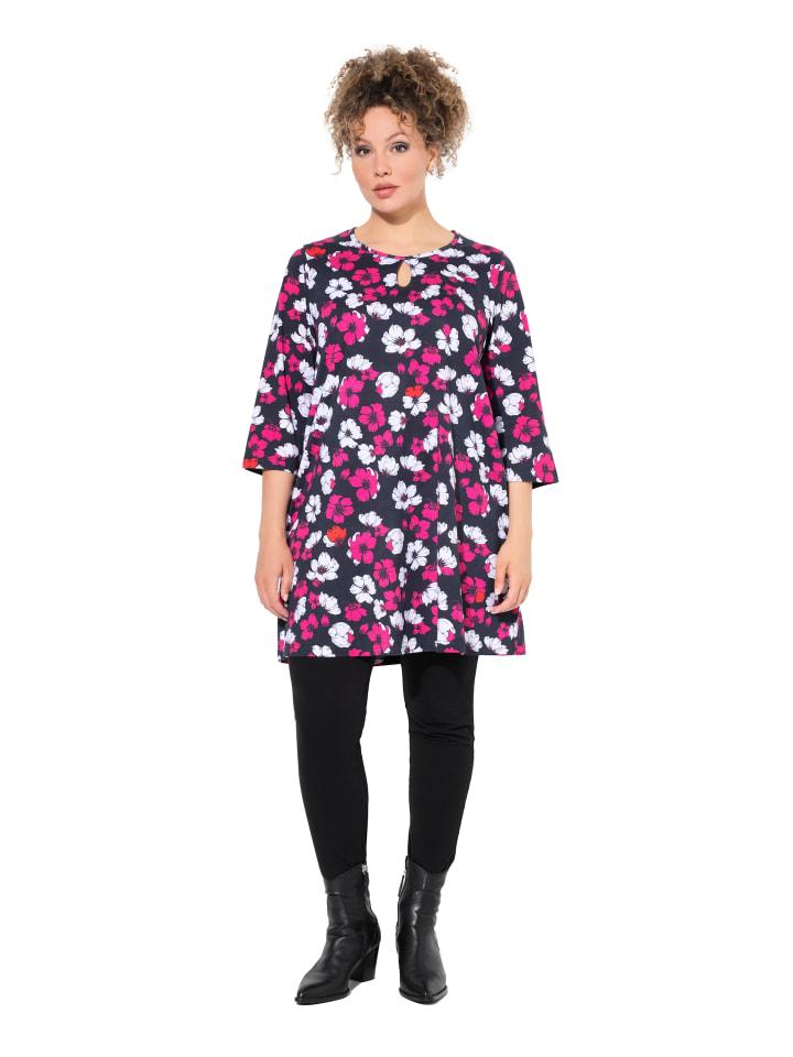 Длинная рубашка, А-силуэта, с вырезом на груди, с круглым вырезом и замочной скважиной, с рукавами 3/4. Удобная ширина подола.материал