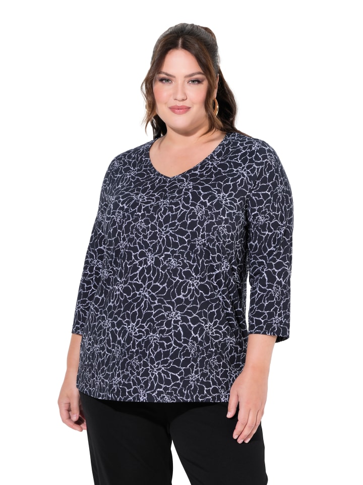 Длинная рубашка, А-силуэта, с вырезом на груди, V-образным вырезом, рукавами 3/4. Удобная ширина подола.материал