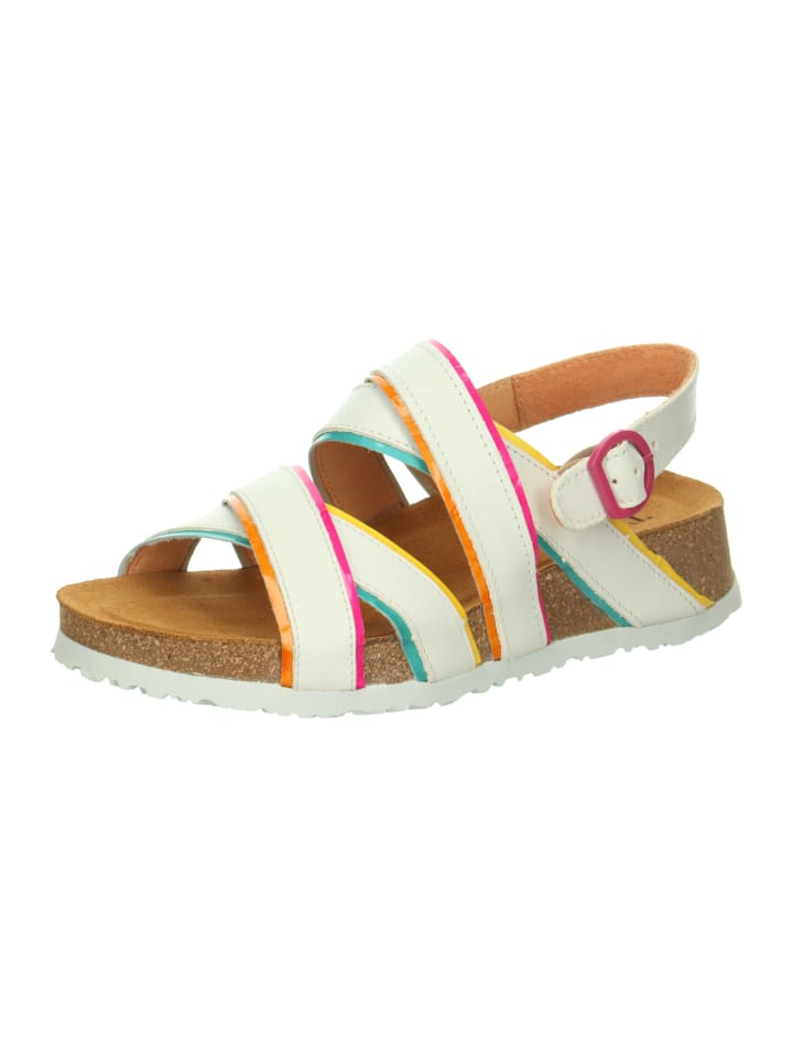 Сандалии с ремешками KOAK никогда не будут слишком яркими для ног. Цветная окантовка в Think! Сандалии очень неброские, но все же привлекают всеобщее внимание. Стелька из пробки анатомической формы и нежная кожаная подкладка также полезны. Благодаря легкой набивке у этих сандалий с ремешками нет никаких шансов на появление пролежней. Типичный Think! Удобство ношения. Так что КОАК как будто приготовлен на лето.