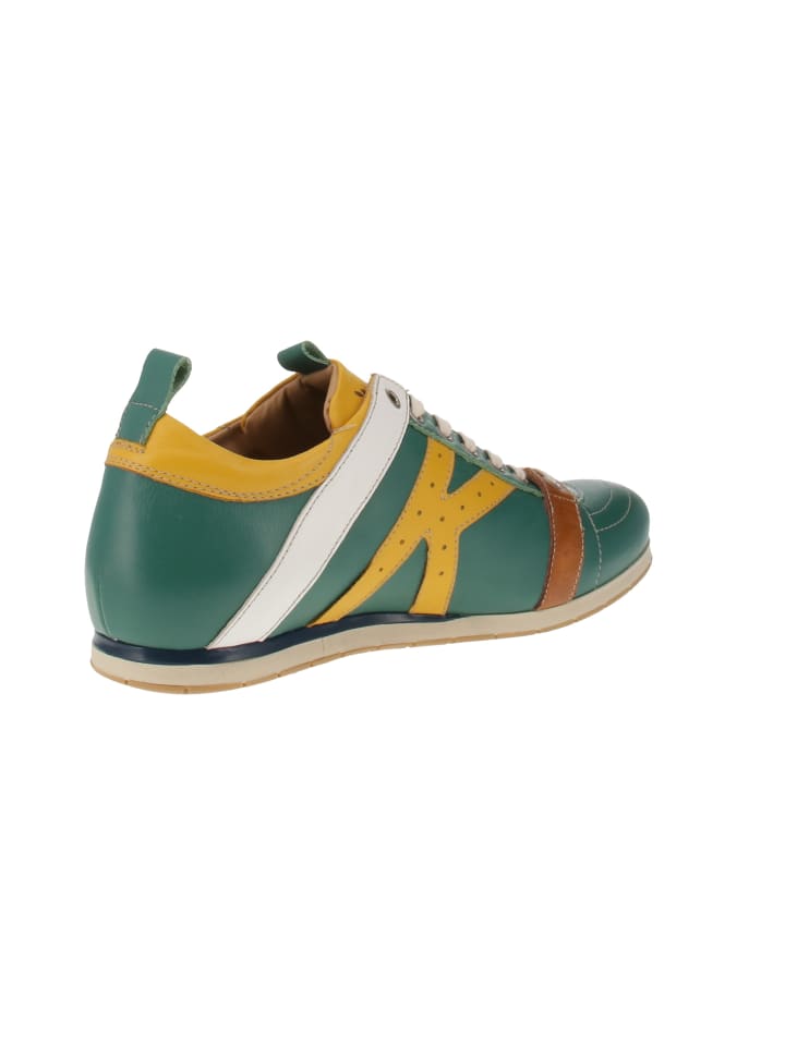 Высококачественный кожаный верх в оптимально подобранном цветовом сочетании делает эти мужские кроссовки ручной работы от бренда Kamo-Gutsu настоящим весенним и летним хитом. Кожаная стелька является съемной и легко заменяется. В комплект также входят модные альтернативно-оранжевые шнурки.