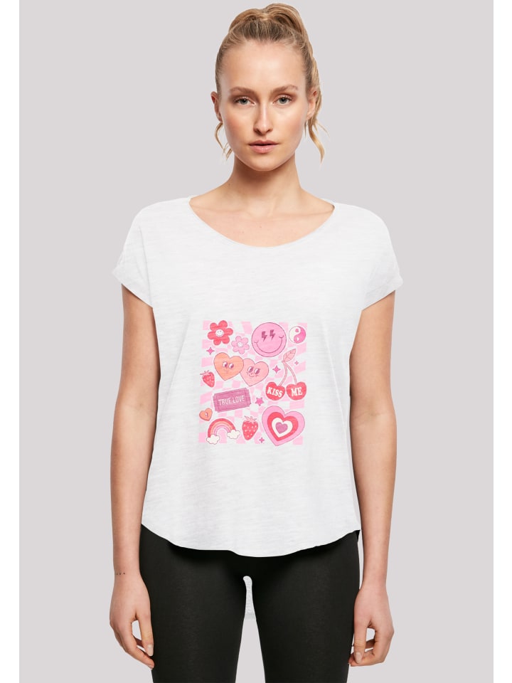 Идеально подходит для весны и Дня святого Валентина. Сзади очень длинная женская футболка. Очень мягкая хлопчатобумажная ткань с высоким комфортом. Модный закругленный подол. Ретро-фрукты с сердечком радуги на День святого Валентина