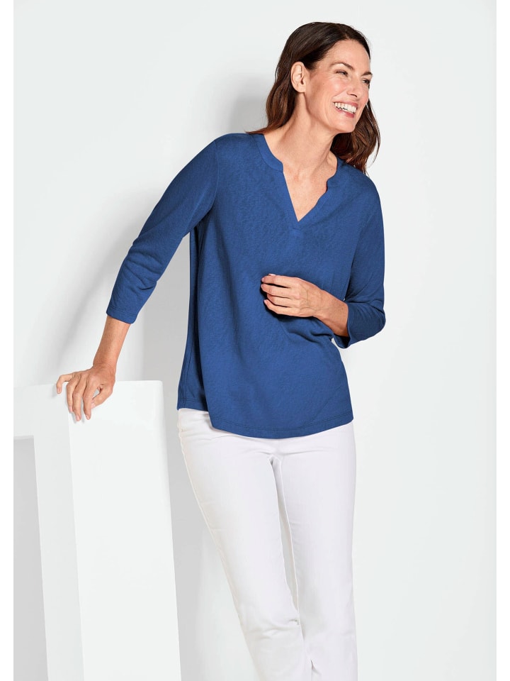 Рубашка свободного кроя с рукавами длиной 3/4 дюйма. Вырез с круглым вырезом выполнен с лицевой панелью, переходящей в вытянутую букву V. Особенно воздушным эффектом обладает огнестойкая посуда с зернистой ручкой, но при этом почти непрозрачная. Качественный трикотаж из вискозы также прост в уходе и приятно мягок в носке. С этой рубашкой ваш базовый гардероб получит модное обновление! Длина ок. 66 см в гр. 46, около 62 см в гр. 23.