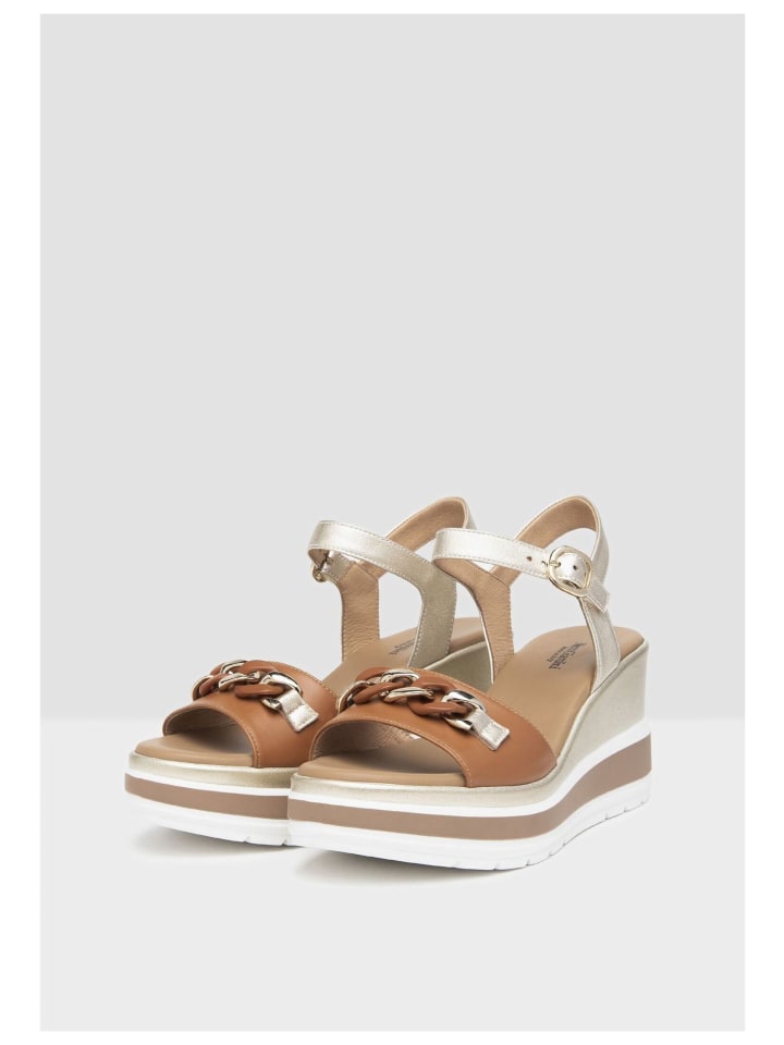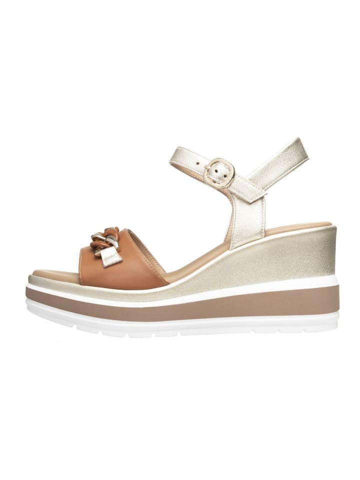 Элегантные и модные сандалии на танкетке от NERO GIARDINI с превосходным качеством и высококачественной кожей всегда отлично смотрятся на фигуре. Эти простые и качественные туфли наверняка поразят вас с самого первого момента. Особое внимание привлекает цепной элемент на ремне.