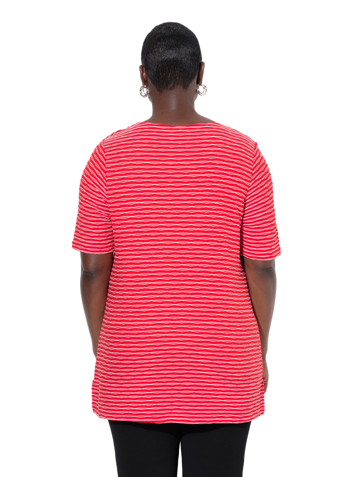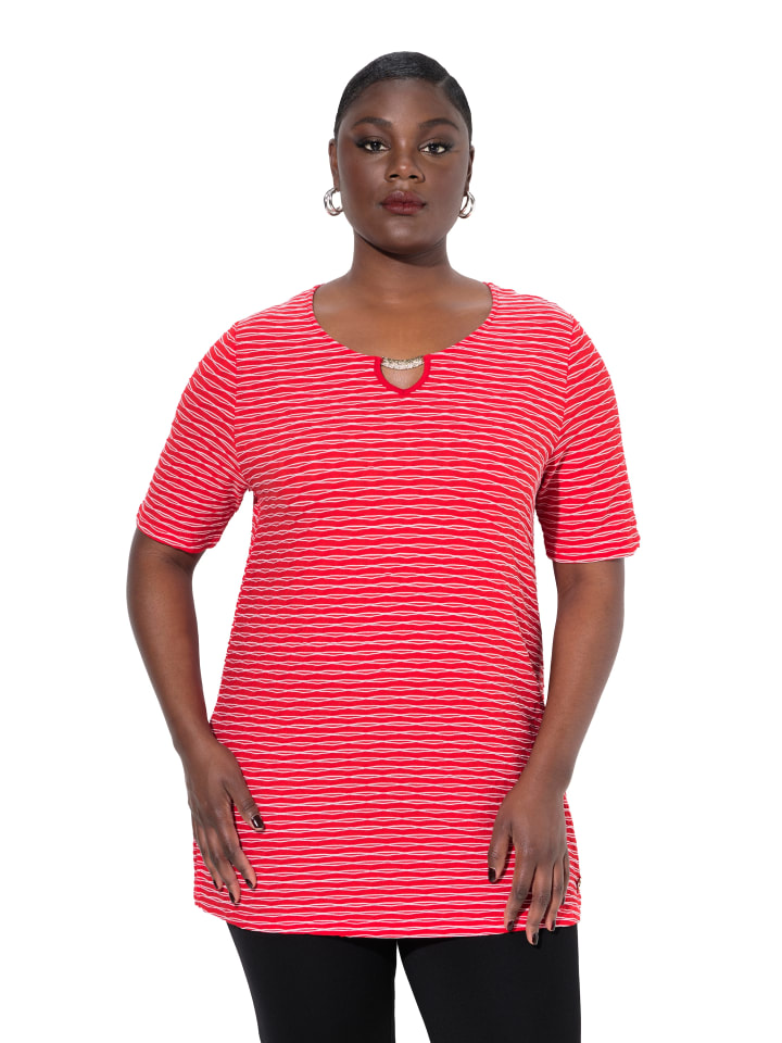 Футболка классической формы из мягкого трикотажа с тонкой текстурой. Круглый вырез с металлическим зажимом и "V"-образной замочной скважиной. Полурукий. Боковые прорези для гладкого корпуса.материал