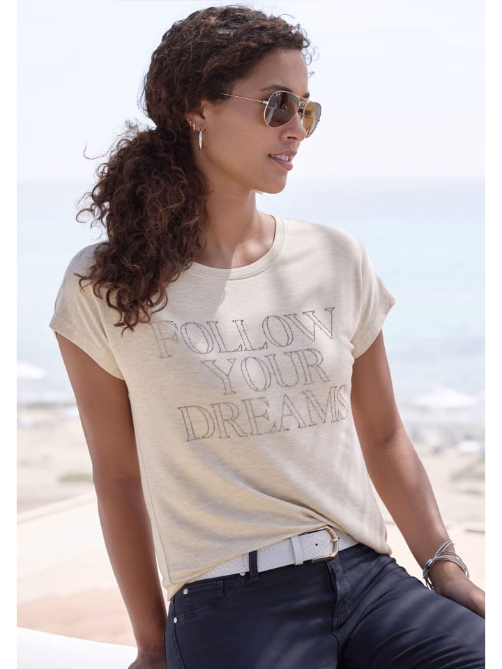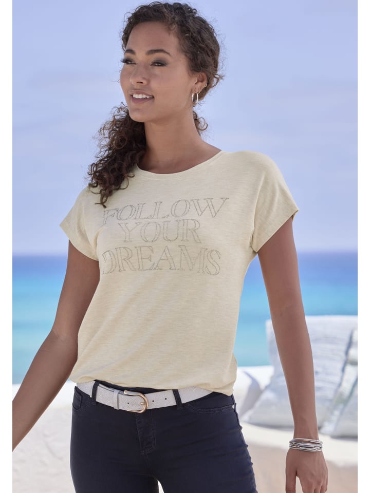 Футболка от Lascana с надписью из драгоценного камня спереди. Круглый вырез. Мягкий вязкий сорт.