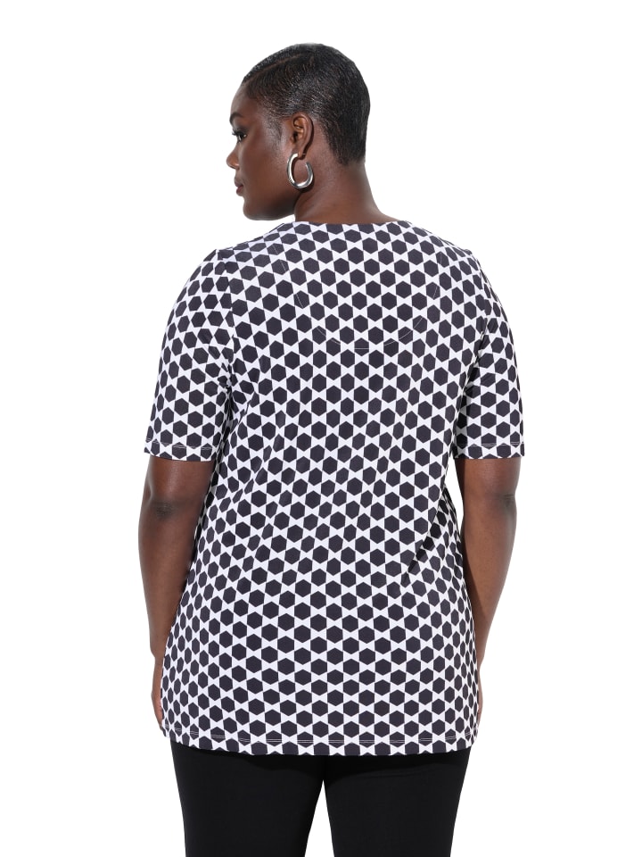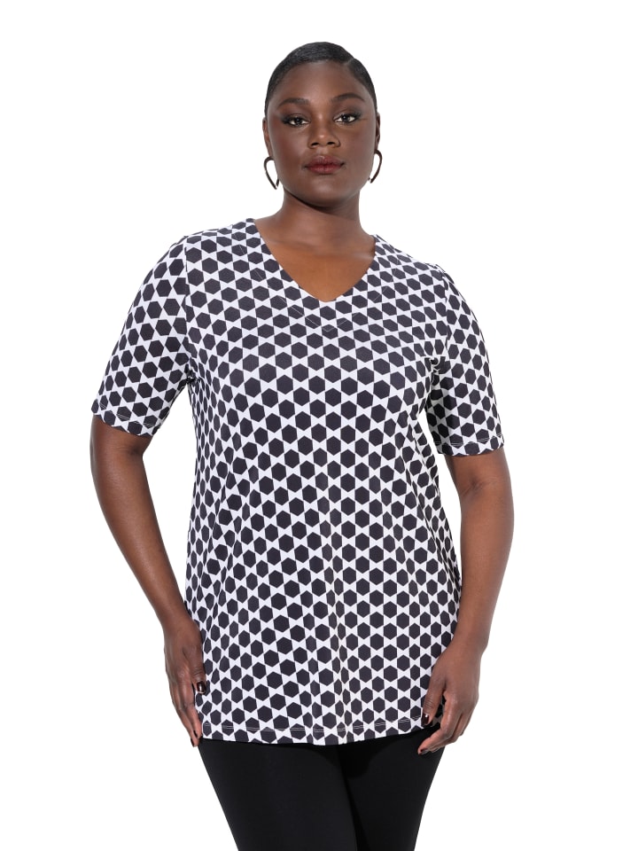 Облегающая рубашка пике А-силуэта из изысканной облегающей ткани пике с тонкой текстурой и минималистичным геометрическим дизайном. V-образный вырез, полурукав.материал