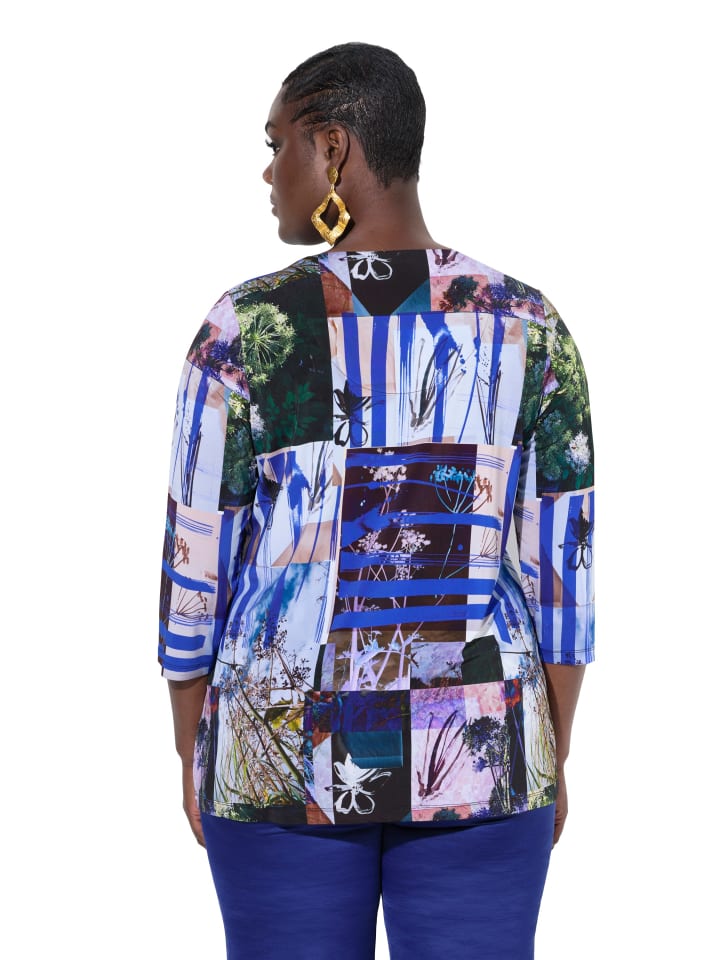 Облегающая рубашка А-силуэта из высококачественного облегающего трикотажа с инновационным дизайном с патч-принтом. Вырез в форме сердца, рукав 3/4.материал