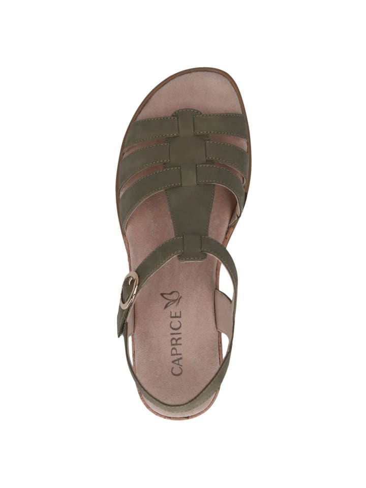 Сандалии на плоской подошве Caprice, цвет olive nubuc