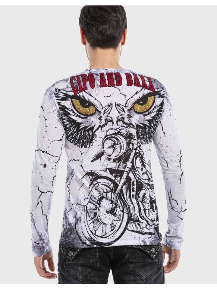 Изюминкой является мужская толстовка от Cipo & Baxx. Он изготовлен из высококачественного хлопка и полиэстера и обеспечивает комфортное ношение даже в прохладные дни. Модная модель обязательно должна иметь свои классные мотоциклетные принты спереди и сзади, которые дополняются крупным фирменным принтом. Это создает эффектный образ, который вызывает восхищение.